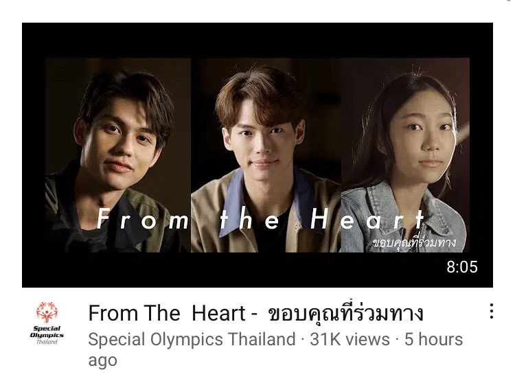 หลังจากที่สมาคมกีฬาสเปเชียลโอลิมปิคไทย ได้เผยแพร่ MV ผลงานเพลง From the Heart หรือชื่อภาษาไทย “ขอบคุณที่ร่วมทาง” บทเพลงส่งต่อกำลังใจและสร้างความตระหนักเกี่ยวกับศักยภาพ การดำเนินชีวิตของผู้พิการทางสติปัญญา โดยตั้งใจเผยแพร่ความเข้าใจผ่านตัวแทนนักกีฬาสเปเชียลโอลิมปิคไทยวัยต่าง ที่แสดงให้เห็นถึงความทุ่มเท มุ่งมั่นของครอบครัว ครู ผู้ดูแล และ เพื่อนร่วมงาน ที่มีบทบาทสำคัญในชีวิตของพวกเขา เป็น MV ที่ทำให้คนดูน้ำตาซึมมากที่สุดชิ้นหนึ่ง ขับร้องโดย ทูตศิลปิน ไบร์ท วิน จาก GMMTV และ เอด้า ชุณหวชิร สาวน้อยเสียงใส ทูตยุวชนสเปเชียลโอลิมปิคไทย
